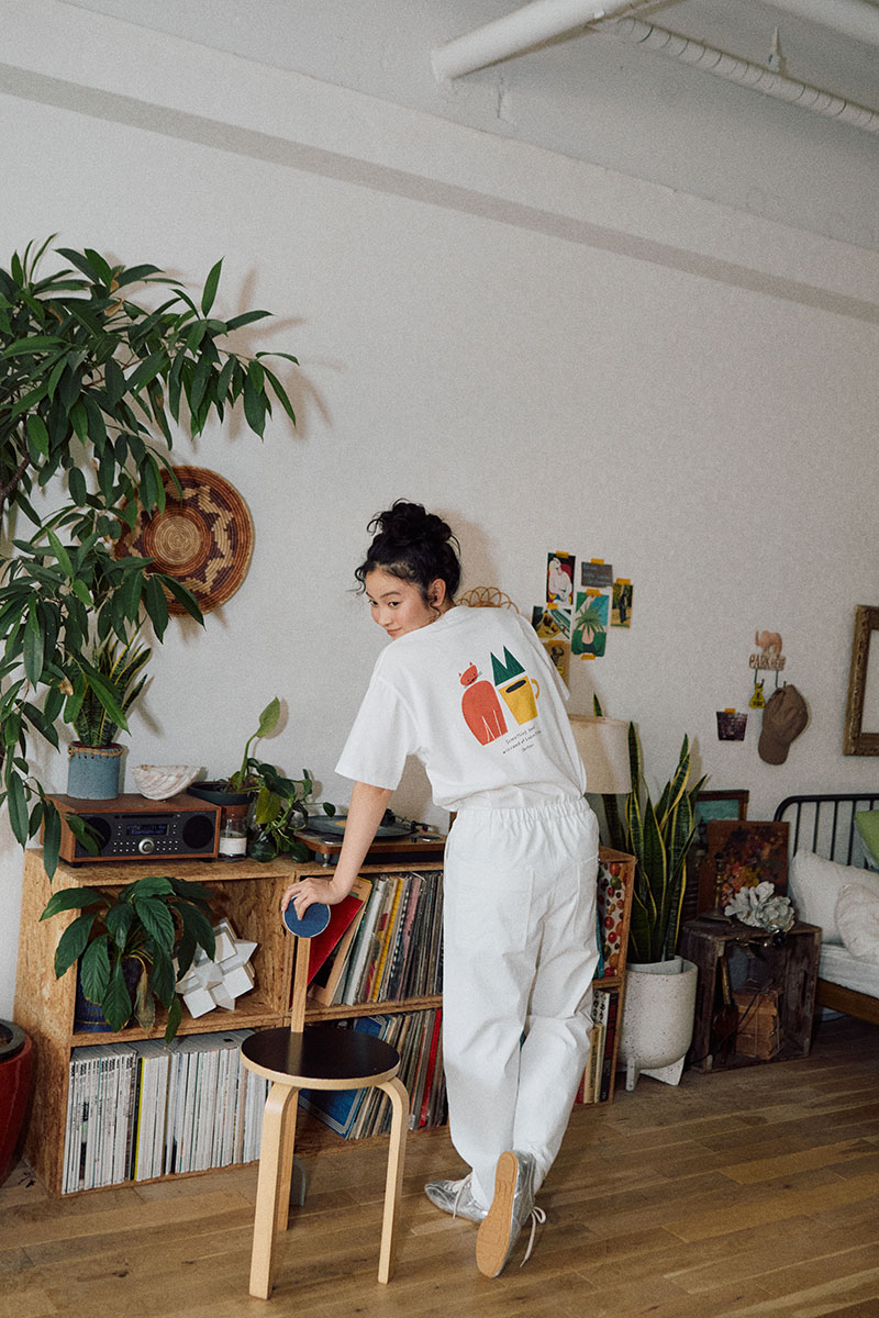 「暮らしの中で着ているだけでなにか少し気持ちが軽くなったりいい気分になるお洋服というのがあると思うのですがそんなお洋服の1着に今回のコレクションのTシャツも加えていただけたら嬉しいです」(killdiscoさん)