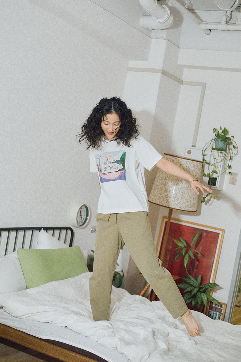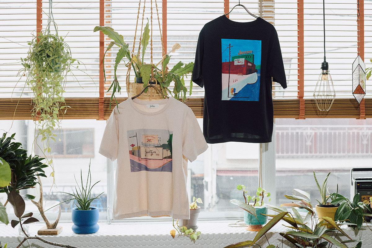 「Tシャツとして仕上がった作品は、生地の色がフレームのように加わることで新たな表情が生まれ、自分の作品ながらも新鮮に感じました。Tシャツを通してアートを取り入れることで、皆さんの日常の風景がより豊かに感じられるきっかけになれば嬉しいです」(辰巳さん)