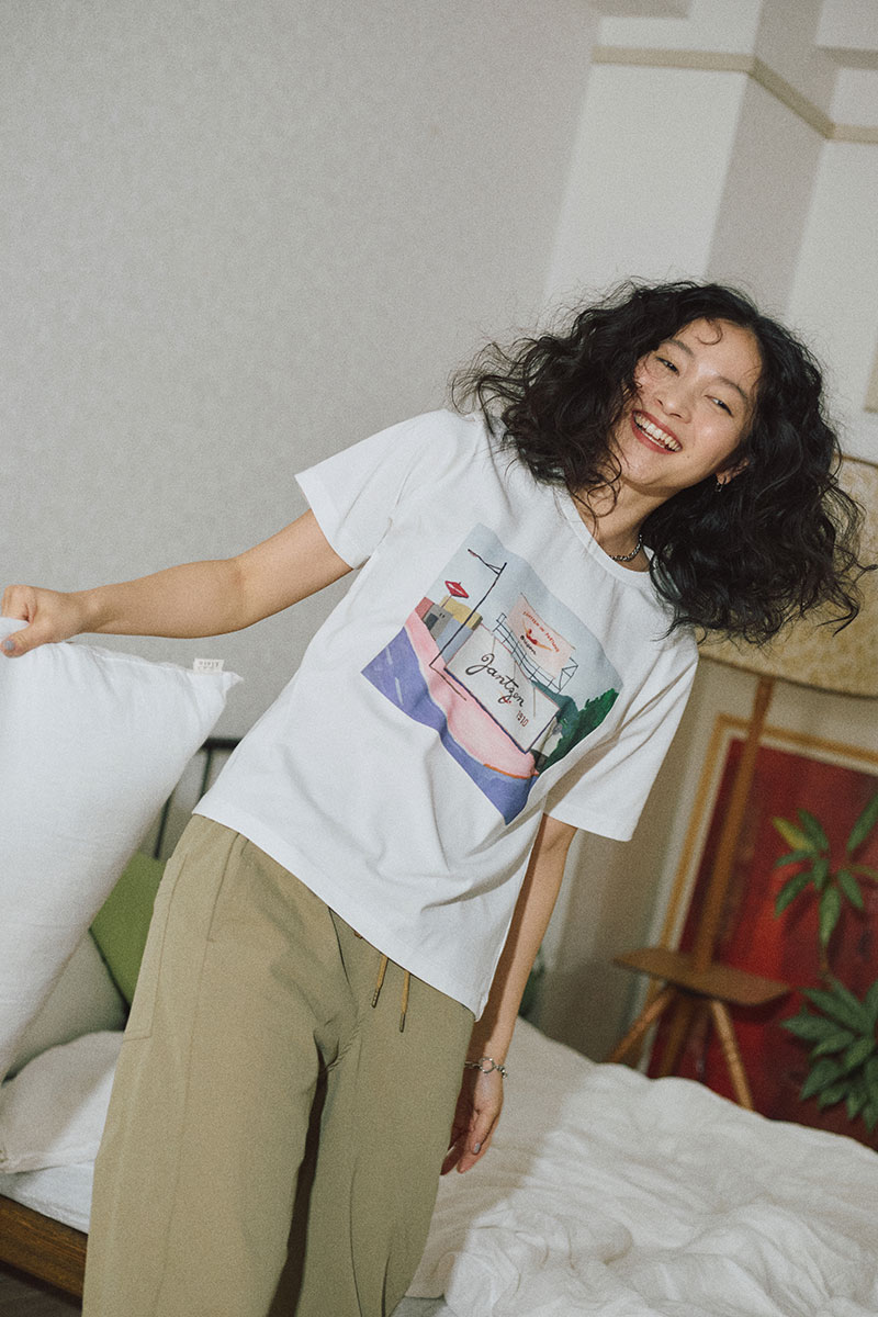「ジャンセン発祥の地であるアメリカ・ポートランドをGoogleストリートビューで旅して、土地の空気や特徴を見て回りました。その中で気になった風景やかわいいポイントを集め、そこにジャンセンのロゴマークを組み合わせて制作。日常の中の“差し色”として取り入れていただけたら嬉しく思います。長い夏をたくさん楽しみましょう」(アーティスト/ペインター・辰巳菜穂さん)