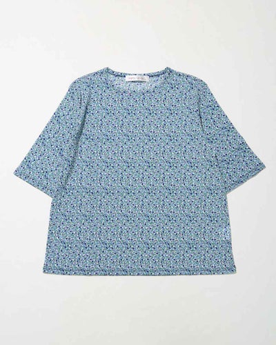通気性と伸縮性に優れたメッシュ素材に、小さな実と葉を散りばめた柄が映える日本製のパワーネットカットソー。5分袖のシンプルなデザインで軽やかで若々しい印象に。カジュアルにもエレガントにも合わせやすい一着です。