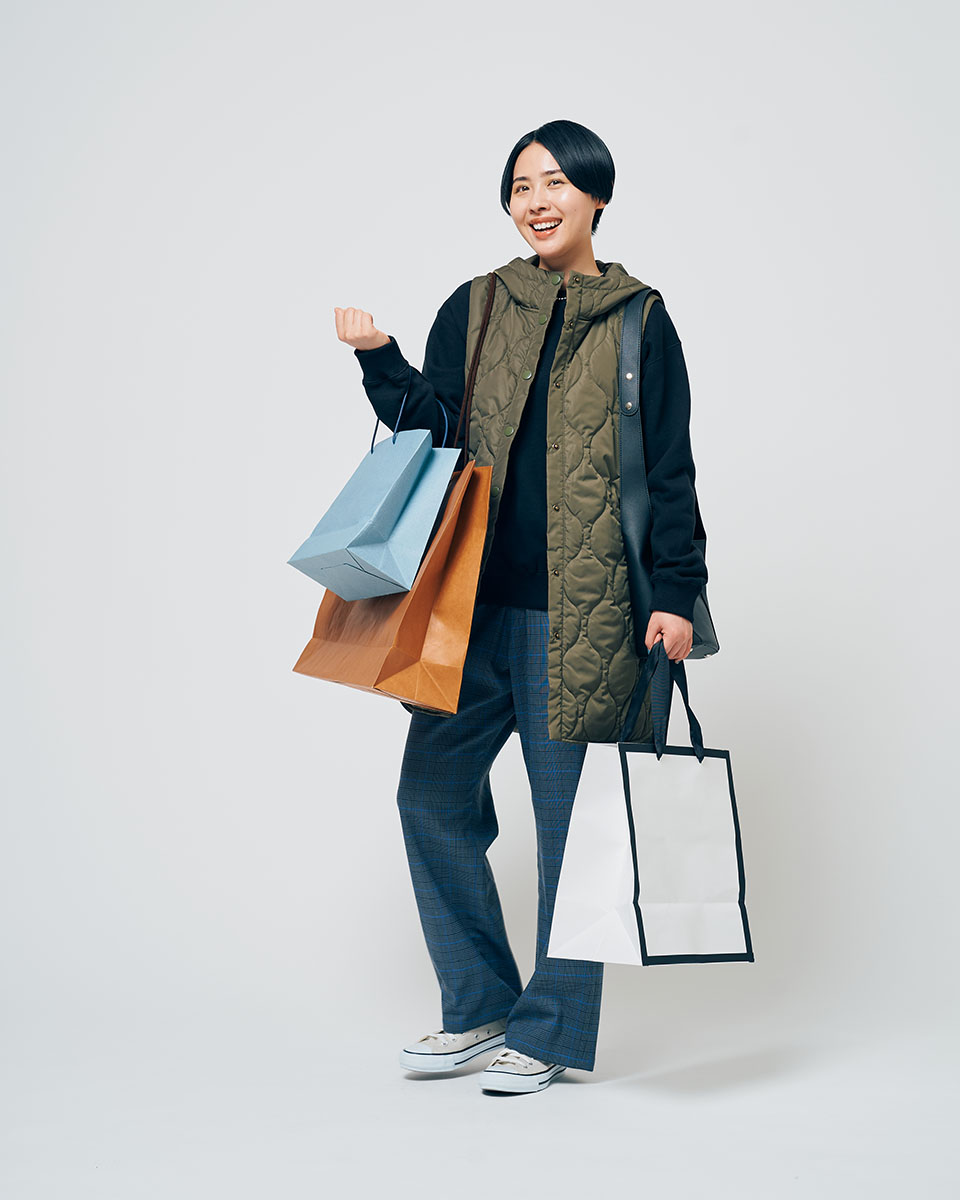 ショッピングに行くなら、トレンド感と季節感が一気にUPするグレンチェックのパンツがおすすめ。トップスには動きやすいスウェットを。アウターに試着の時に脱ぎやすいフードベストを合わせて。楽しすぎてついつい衝動買いしちゃうかも?