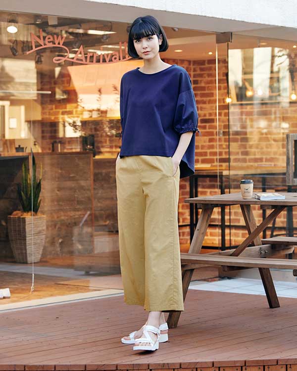 ウエストの幅広ゴムでお腹周りをすっきりさせ、