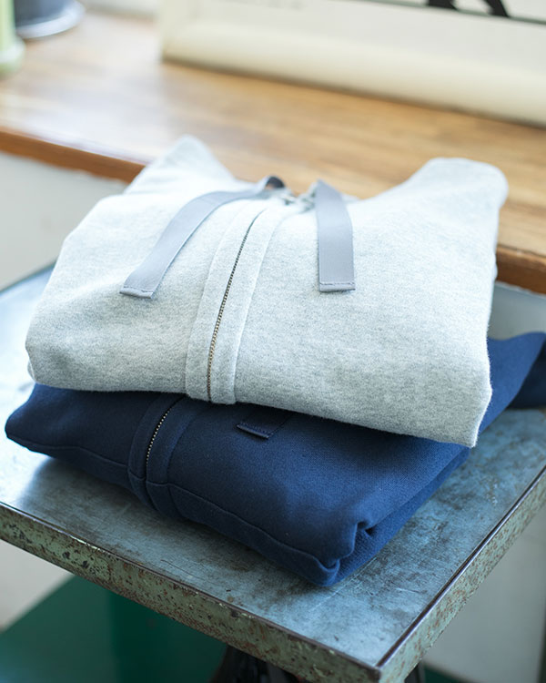 プルオーバーとパーカー共に合わせやすい、グレーとネイビーの2色展開です。