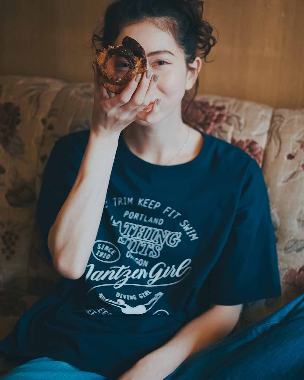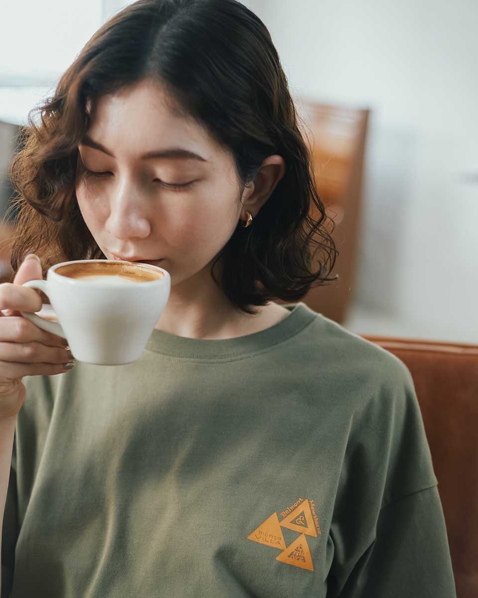 過去のアーカイブをブラッシュアップしたデザインで、古着のプリント T シャツにあるような、それでいて大人の女性も着られるデザイン。