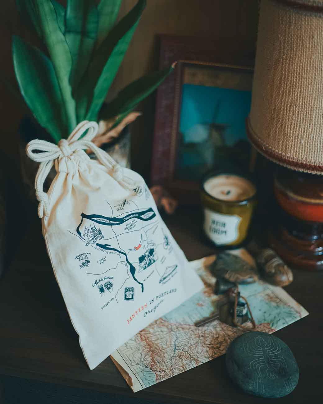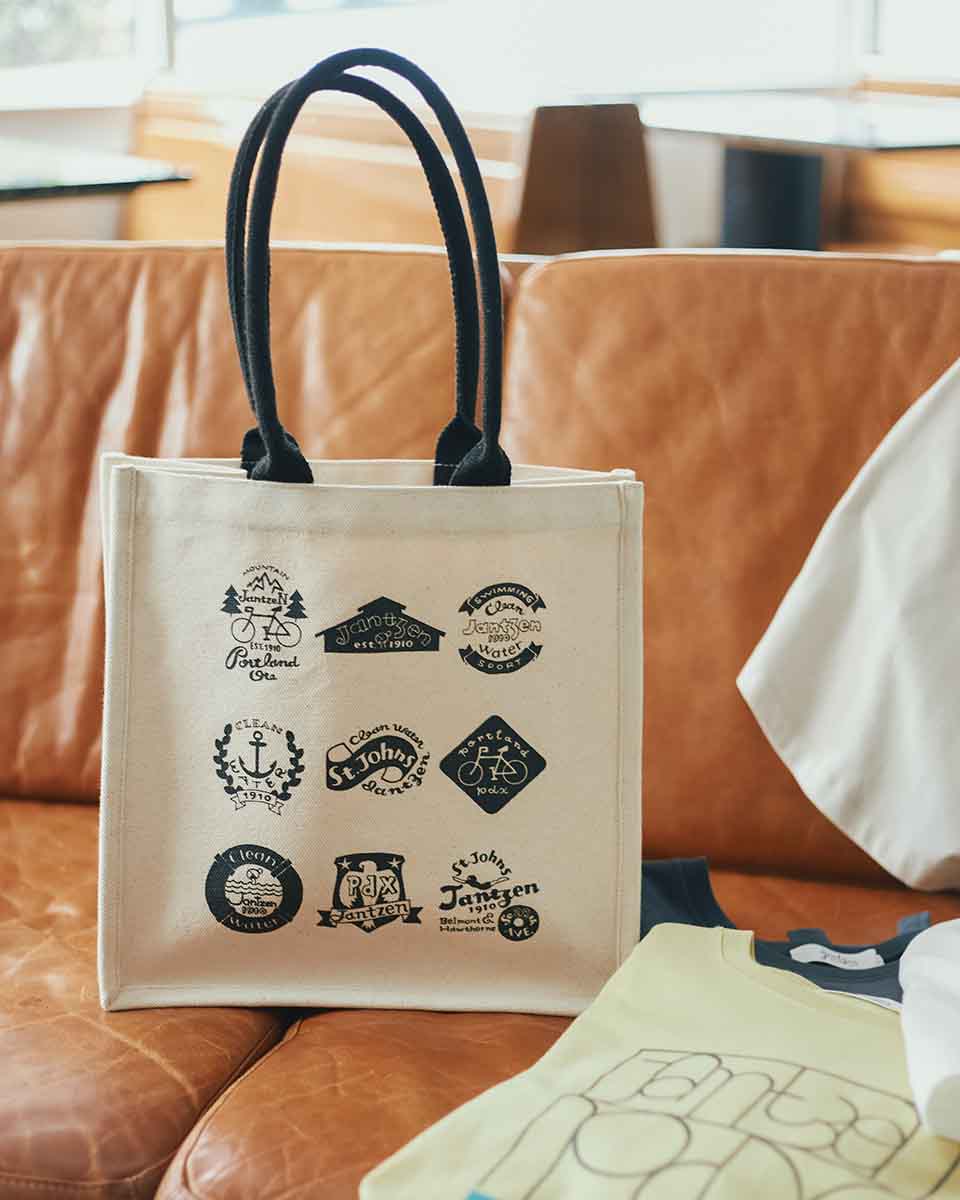JANTZEN 発祥のポートランドにまつわるアイコンを10 個のスタンプ風に仕上げた 1 枚。