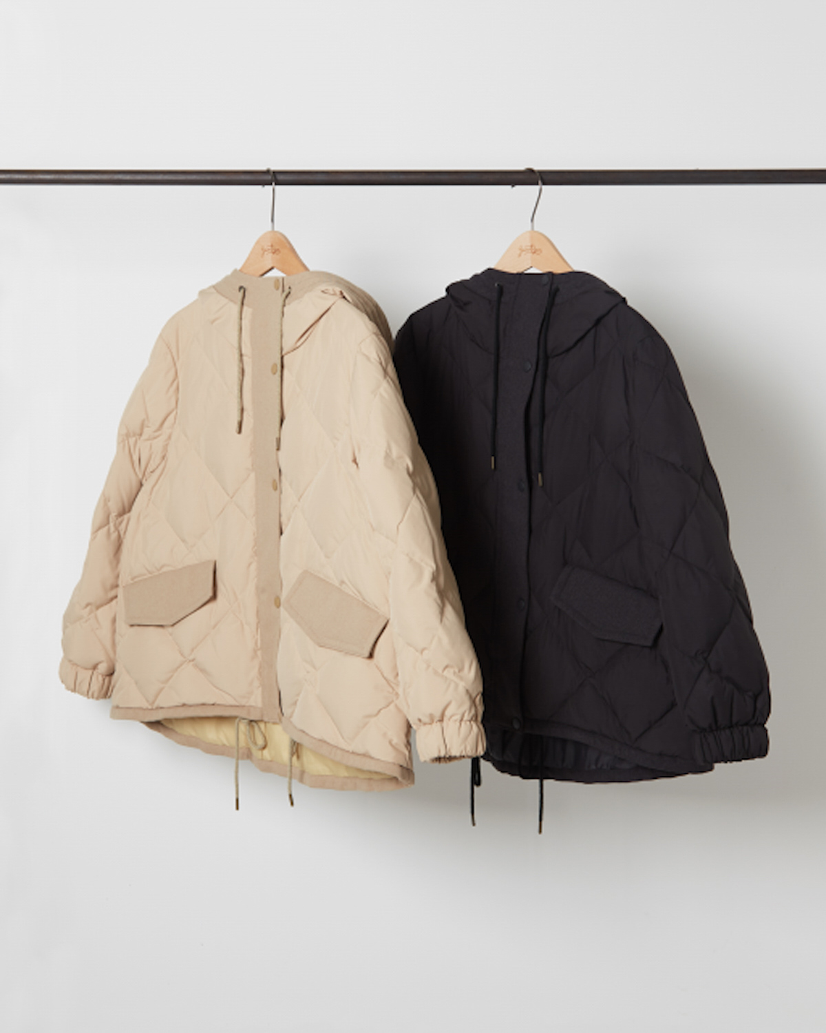 マットな質感のポリエステルタフタにウールライクな素材のコンビネーションでタウンユースに大活躍してくれそう。