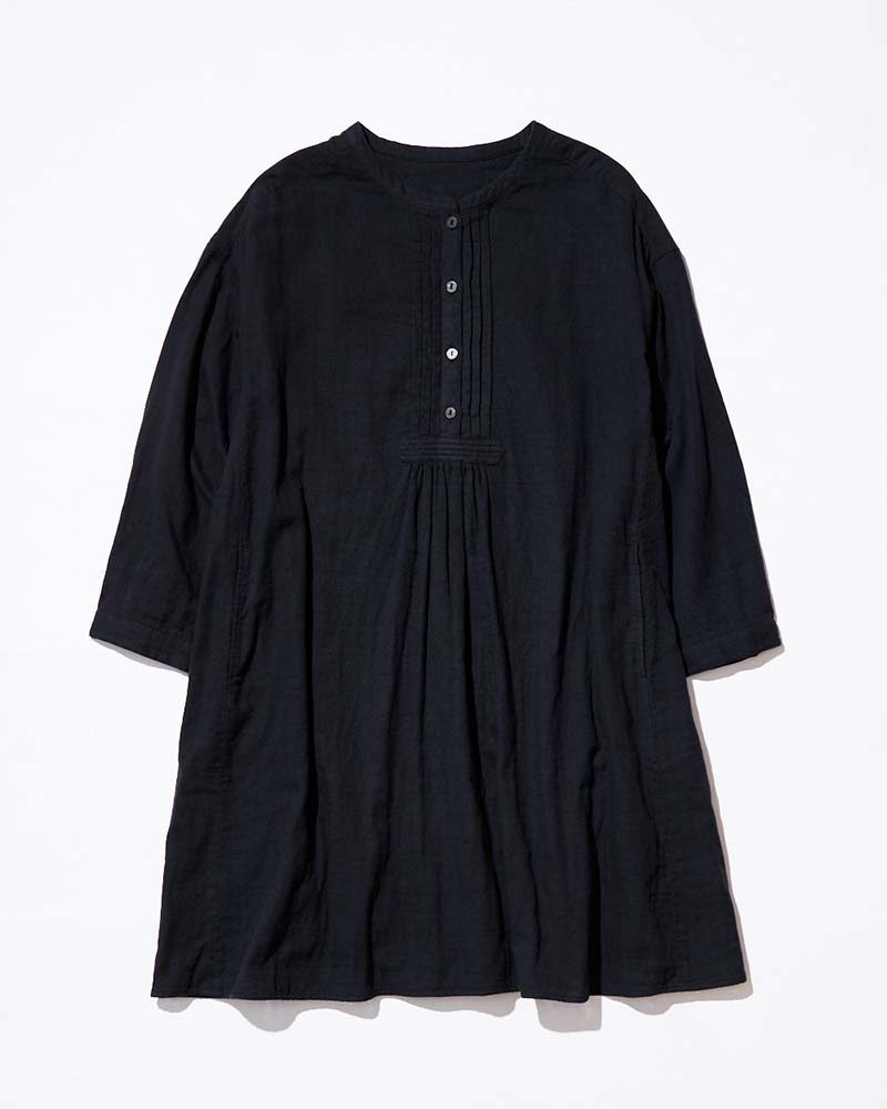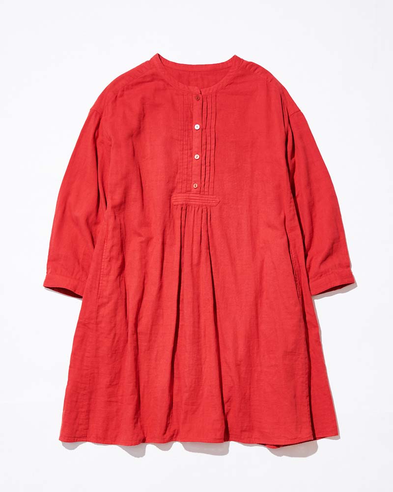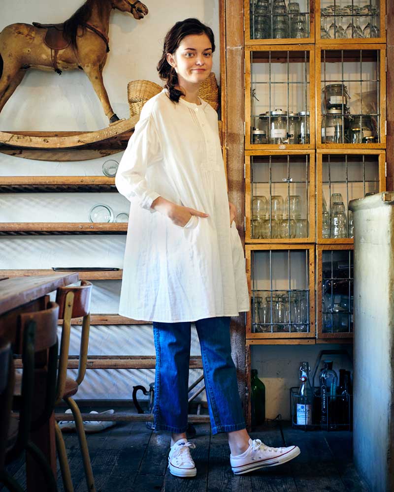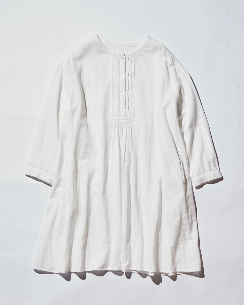軽くて肌触りが良くて、ふんわりと軽いダブルガーゼ。しかもオーガニックコットンを使っているから心地よさは格別です。ホフホワイトのチュニックワンピースは製品洗いをかけることでこなれ感が○