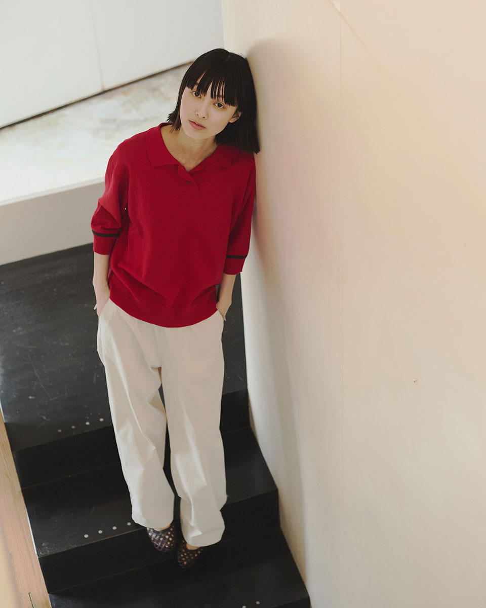 長めの前立てがこなれ感を演出し、ポロシャツすぎないのがポイント。裾に向かってふわっと広がるフレアデザインは、体型カバーもしながらスタイルアップ効果も期待できます。