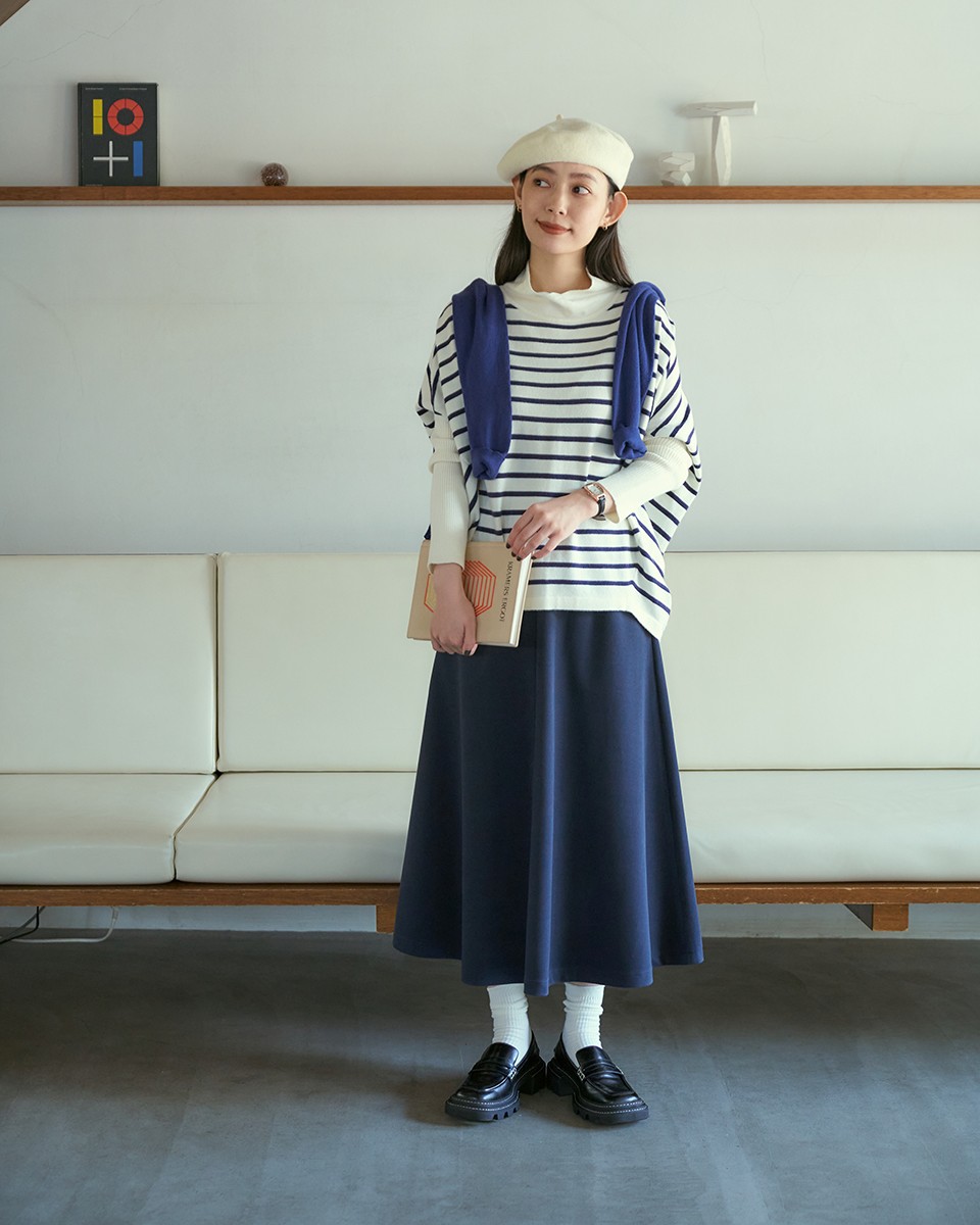 ゆったりとした時間を自分らしく過ごしたい日は、マスタードカラーをチョイス。ボトムも暖かみのあるトーンでまとめてほっこりと。