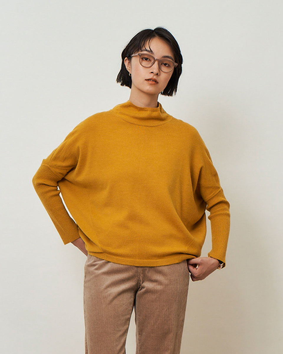 昨年人気だった袖リブ使いが特徴的なハイネックニットが今年も登場。