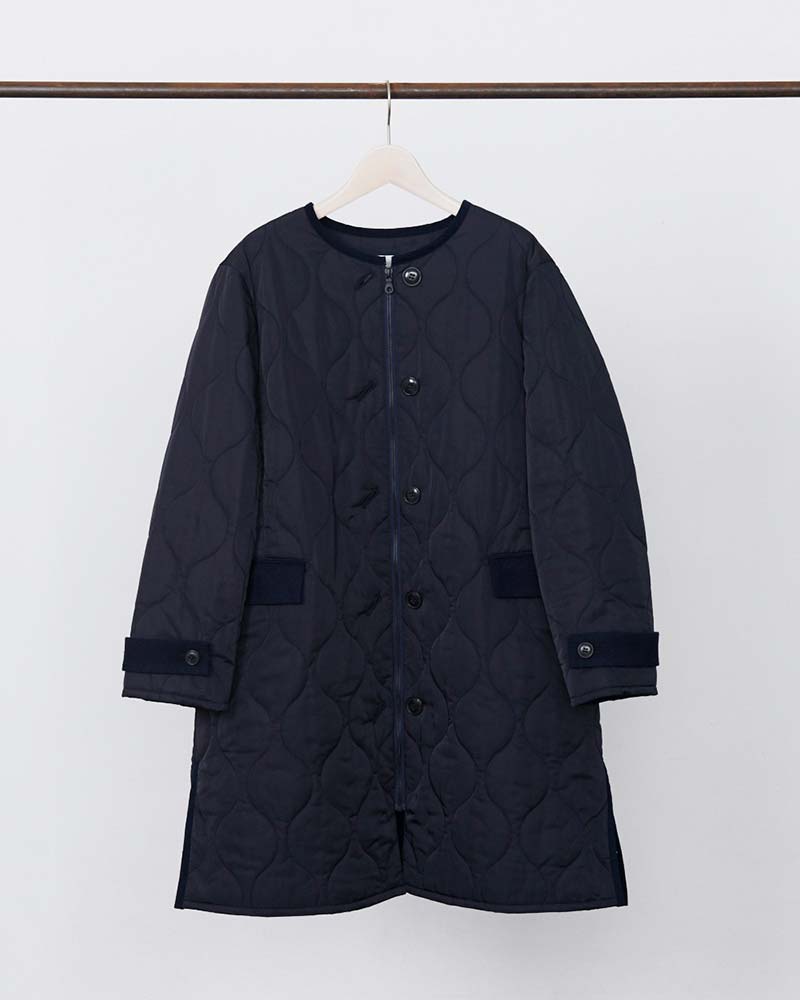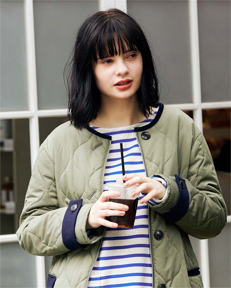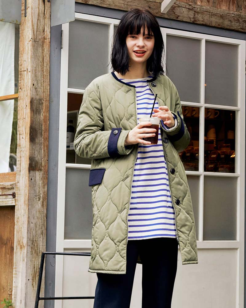ふわっと気軽に羽織ることができるのがキルティングコートのいいところ。ウールのコートみたいに重くないし、だけど適度に暖かい。今から春先まで、長い期間活躍します。一着ワードローブにあると、かなり便利。今一番オススメのアウターです。