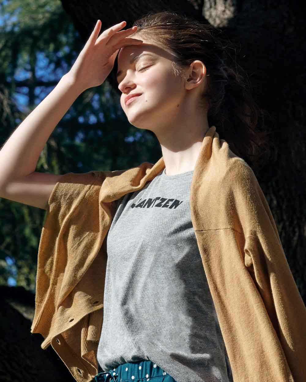 コットンとポリエステルをブレンドした糸で作った生地は、メッシュのような構造になっていて、さらりとした肌あたり。ボトムと合わせやすい色展開で、どのカラーもおすすめです。ワードローブにあれば、またすぐに着たくなるアイテムになるはず。