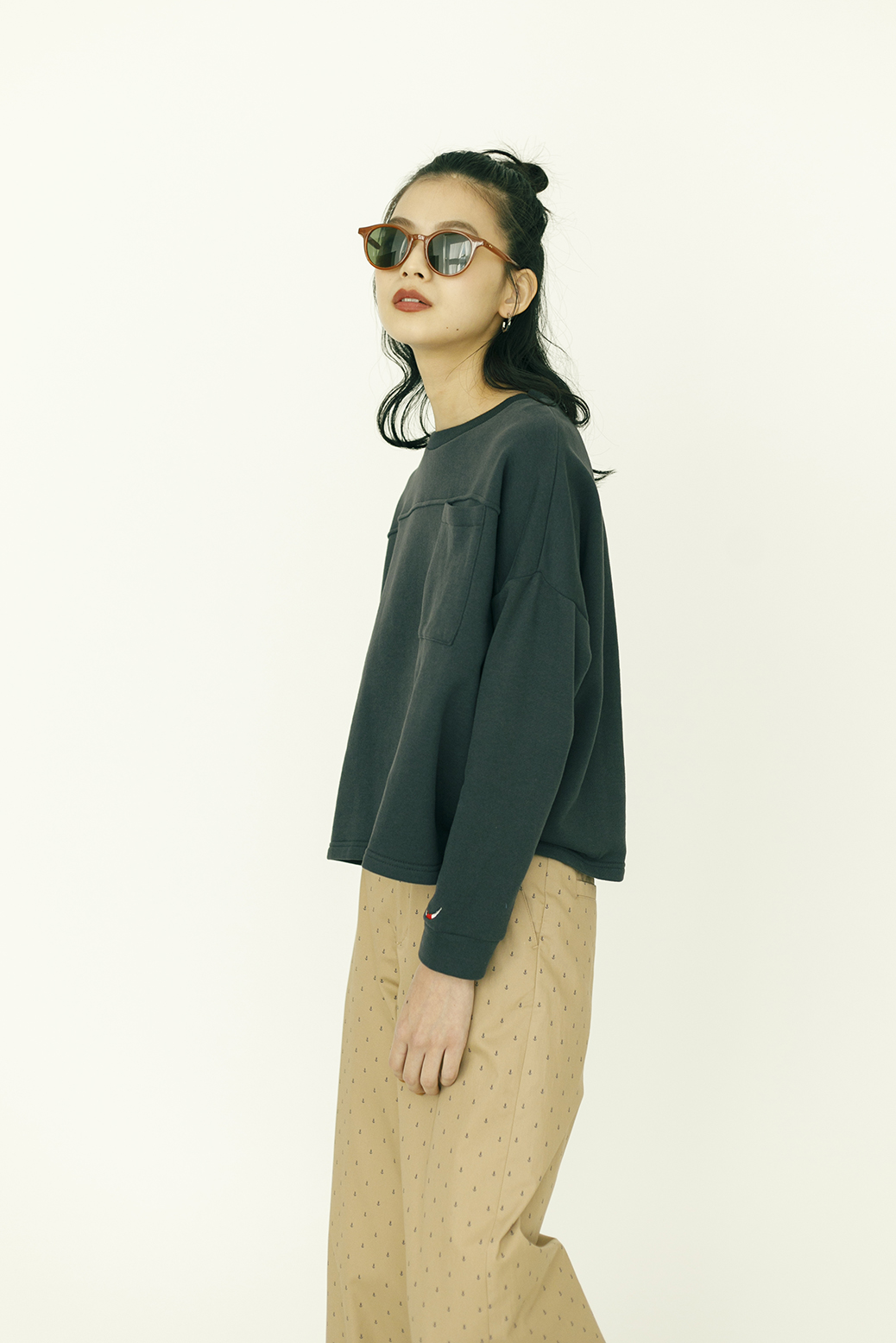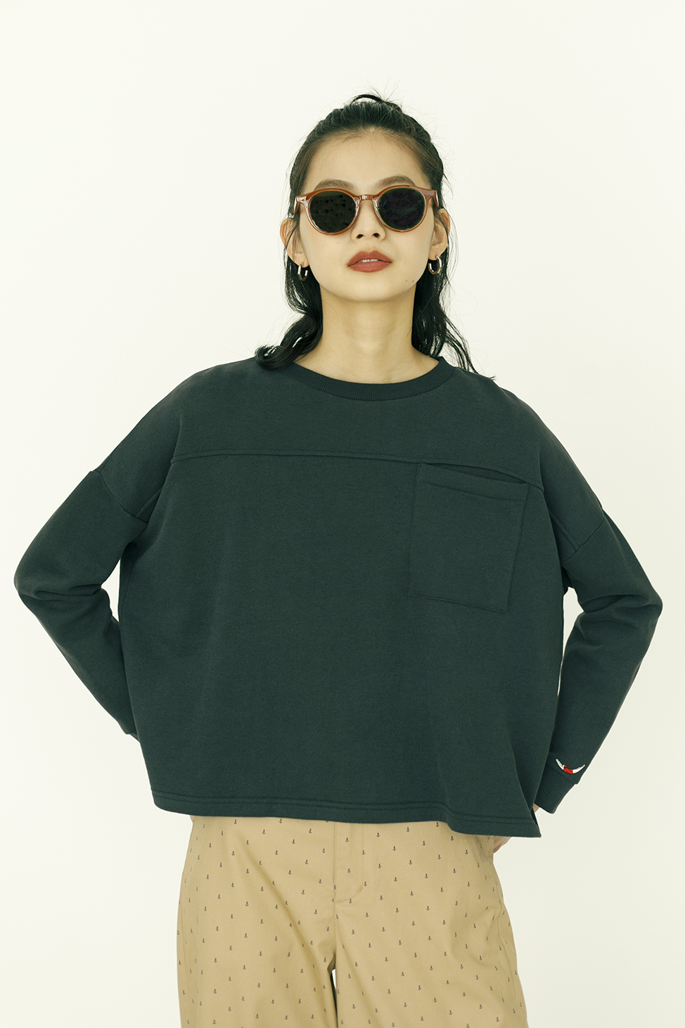 オーガニックコットン100%のスウェット生地を使用したプルオーバー。適度に肉感はありつつも厚過ぎない為、さらっと着れる生地感です。ドロップショルダーのゆったりしたボックスシルエットで着心地も楽ちんです。左胸の大きめなポケットがポイントの着やすいアイテム。
