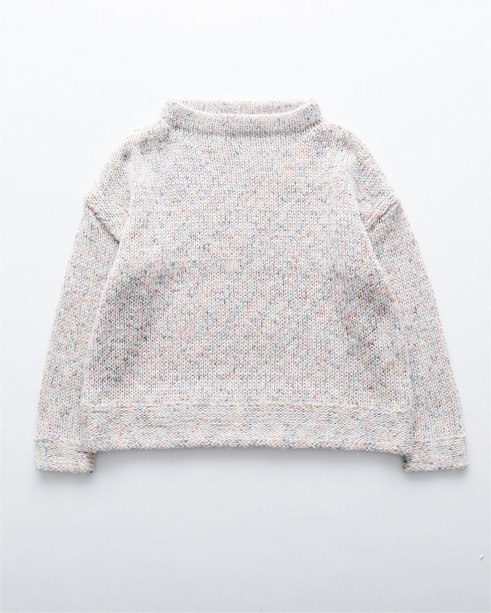 ふっくらと仕上げたニットは肌当たりが柔らかく快適。身幅をややワイドにしたシルエットは体のラインを拾わず、すっきりとしたストレートなラインをお楽しみいただけます。ドロップショルダーのほどよくラフな雰囲気も◎
