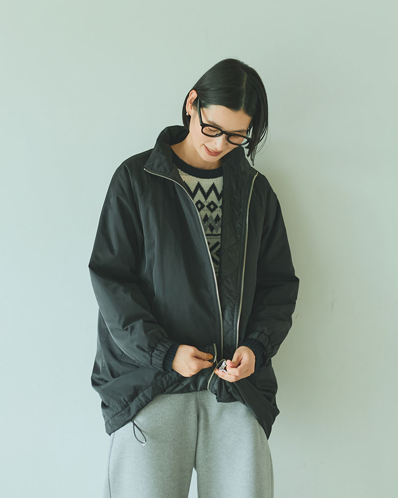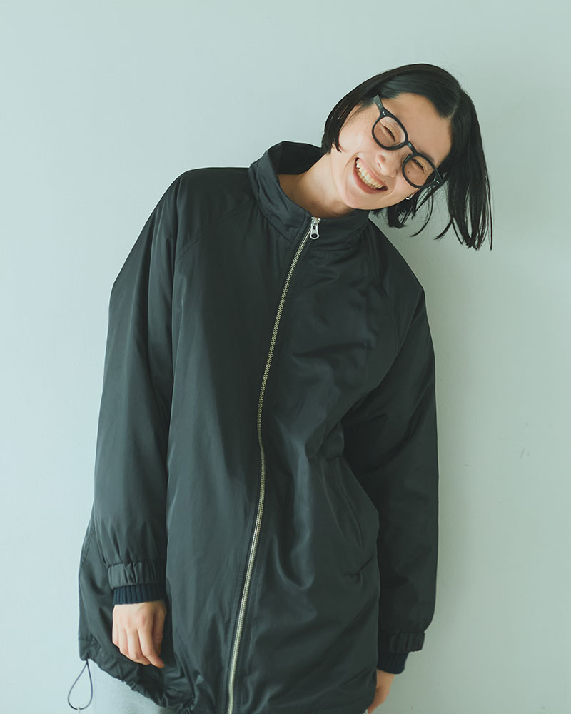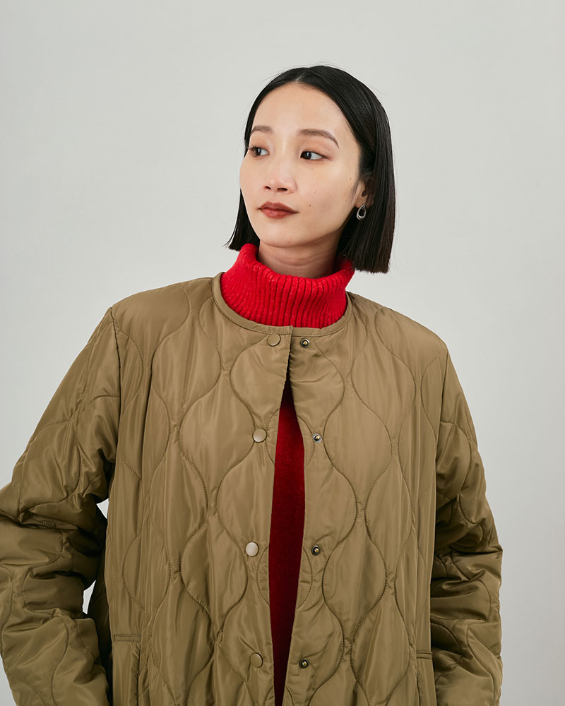 裏地は薄手のキルトであたたかく、ゆったりシルエットだから重ね着も自由自在。