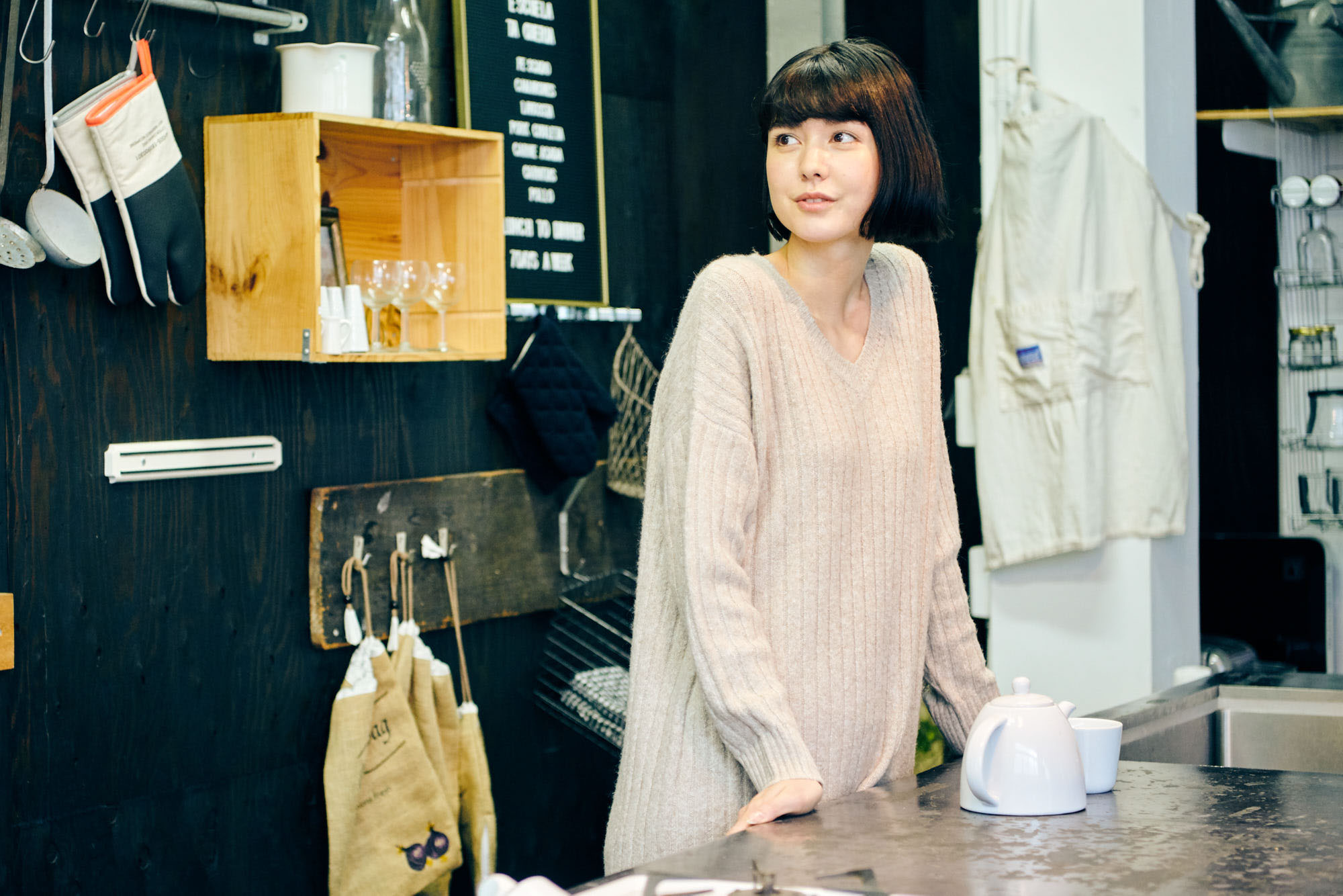 Vネックで女性らしさをプラス。