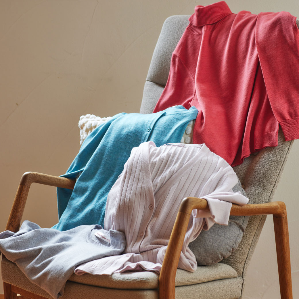 「繊維の宝石」「繊維の王様」と称される 最高級の天然繊維カシミヤを使用したニットをご紹介しています。