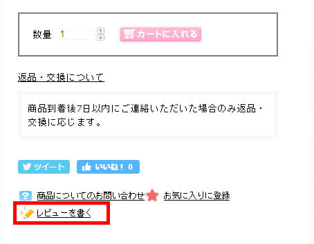 商品ページ内の「レビューを書く」を押すと投稿フォームが開きます。