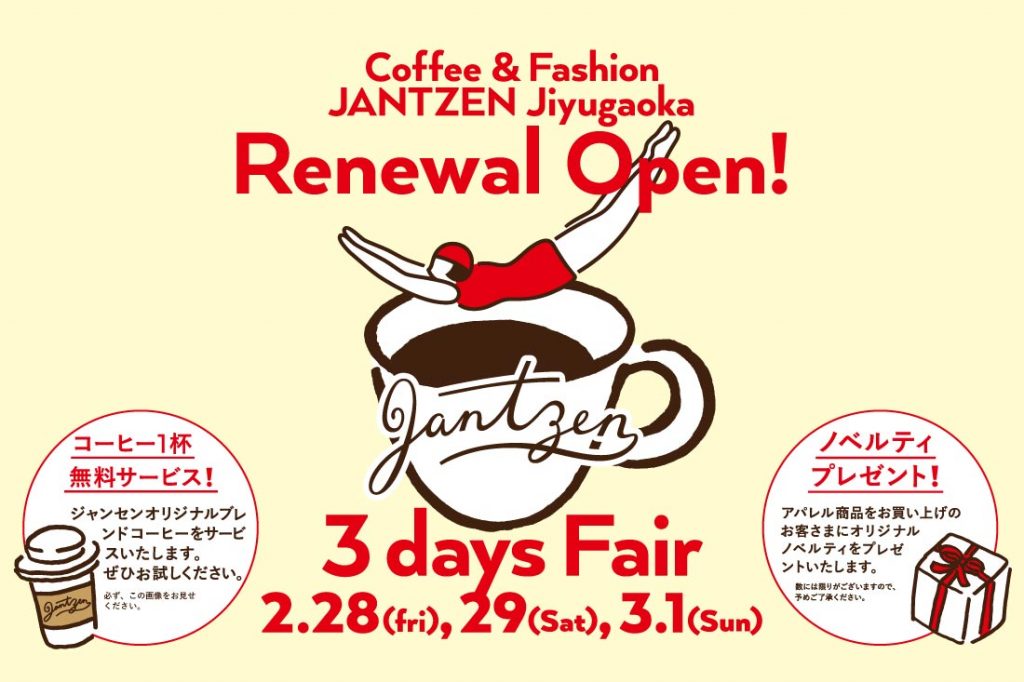 この度、JANTZEN自由が丘店は2/28(金)にカフェを併設して、新たにリニューアルします!