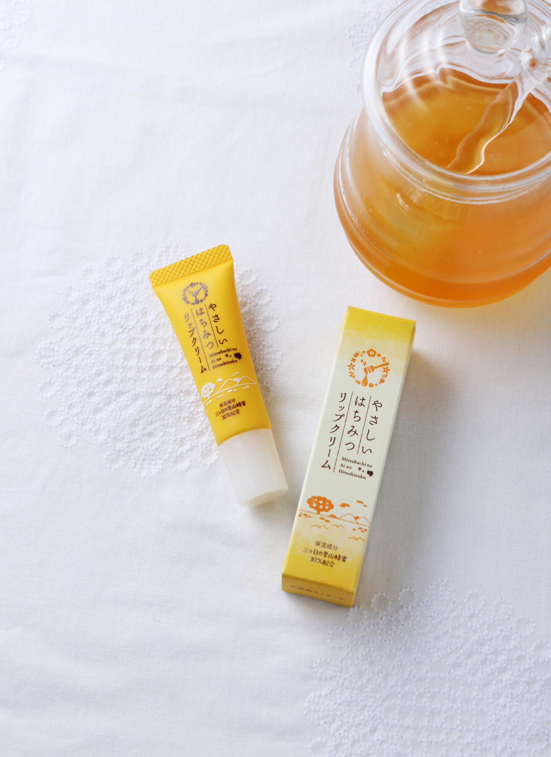 高い保湿力と抗菌作用から食用だけでなくスキンケアにも効果を発揮するはちみつ。はちみつパワーを最大限に生かした「やさしいはちみつリップクリーム」は、はちみつをたっぷり使っていてしっとりツヤのある唇に。「食用のはちみつを唇に塗ってラップで覆えば、手軽にはちみつパックができますよ」と河村さん。食べて安心なはちみつなら、お肌にも安心ですね。