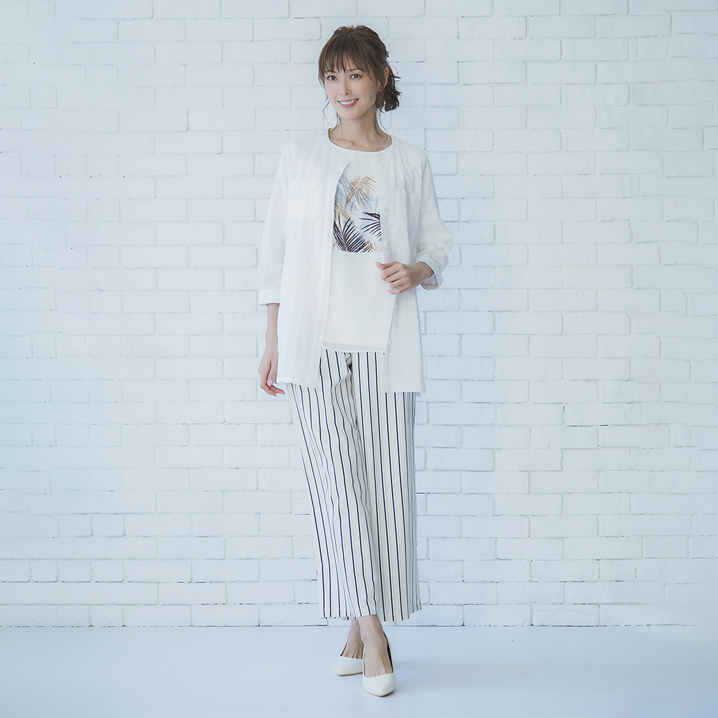 爽やかなルックスの綿100%ジャカードロングブラウス。
