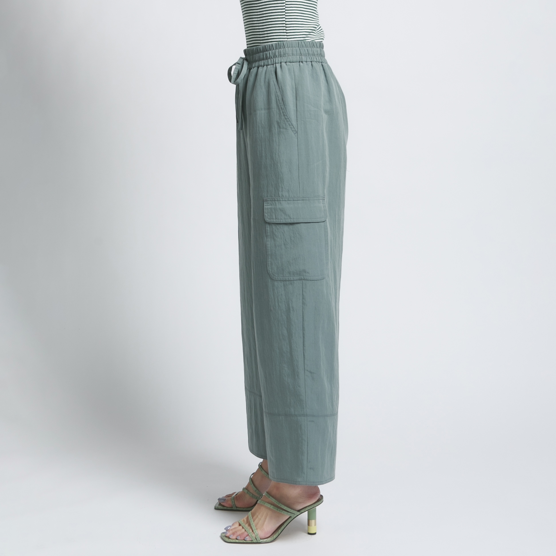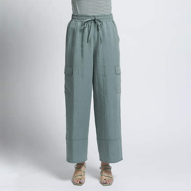 ドローストリング仕様、カーゴポケット、太番手糸のダブルステッチステッチが特徴のきれいめカジュアルパンツです。