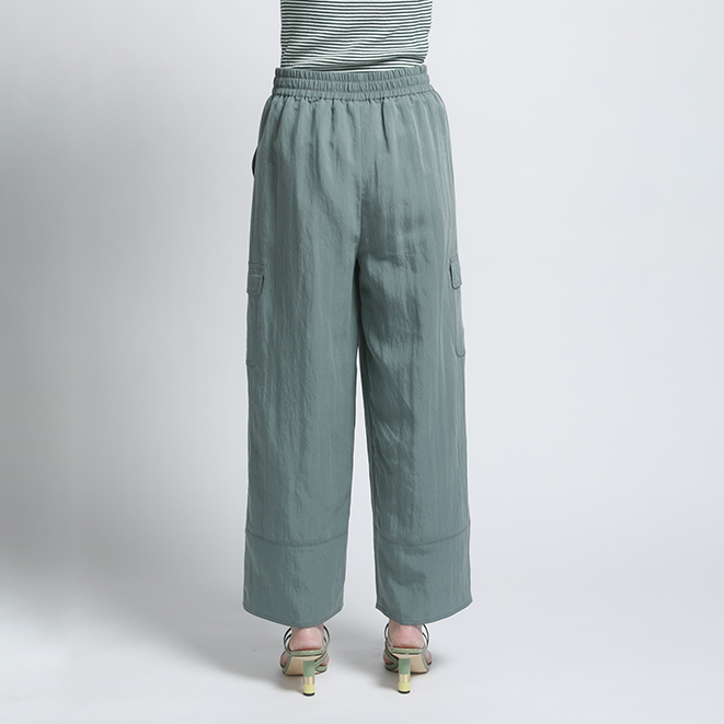 ウエスト総 ゴムでゆったりワイドシルエット。