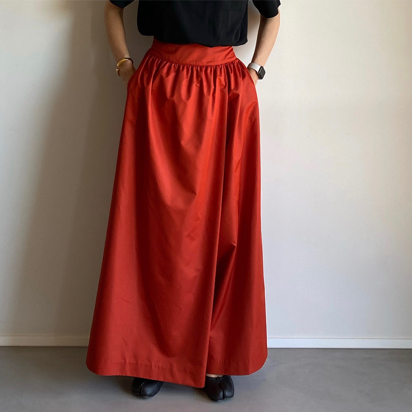 フロントはパッと見た時にマキシスカートのように見えるラップ仕様だから、