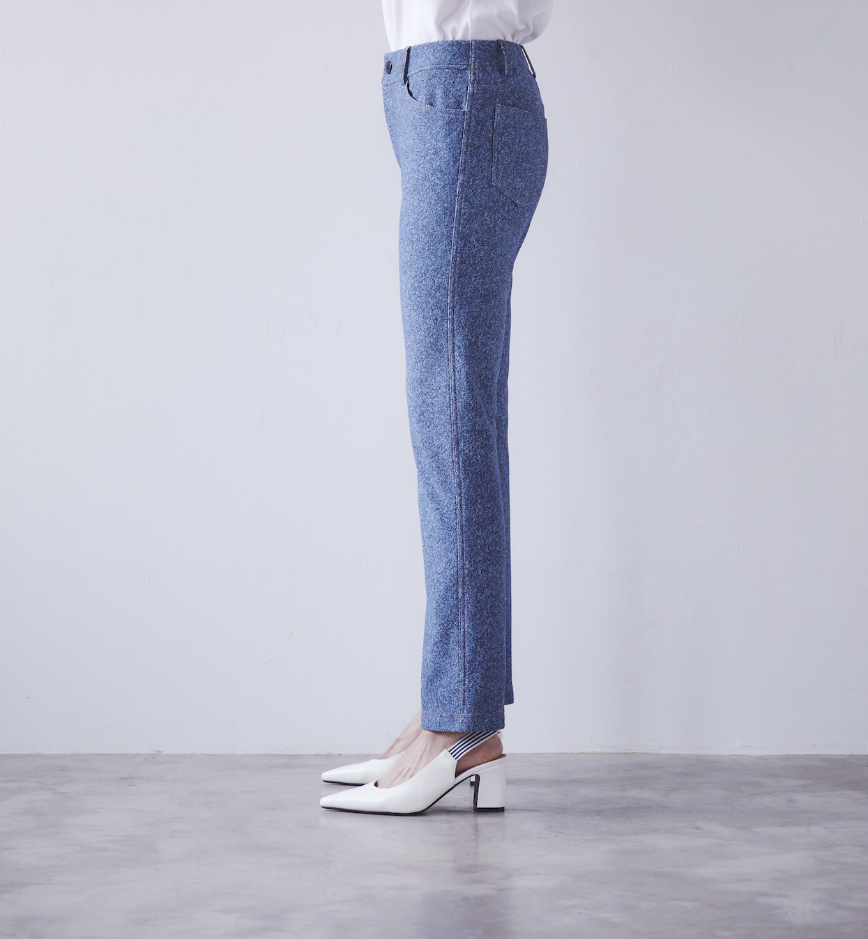 ウエストから足首まで、ほど良くフィットする、スリムシルエットです。
