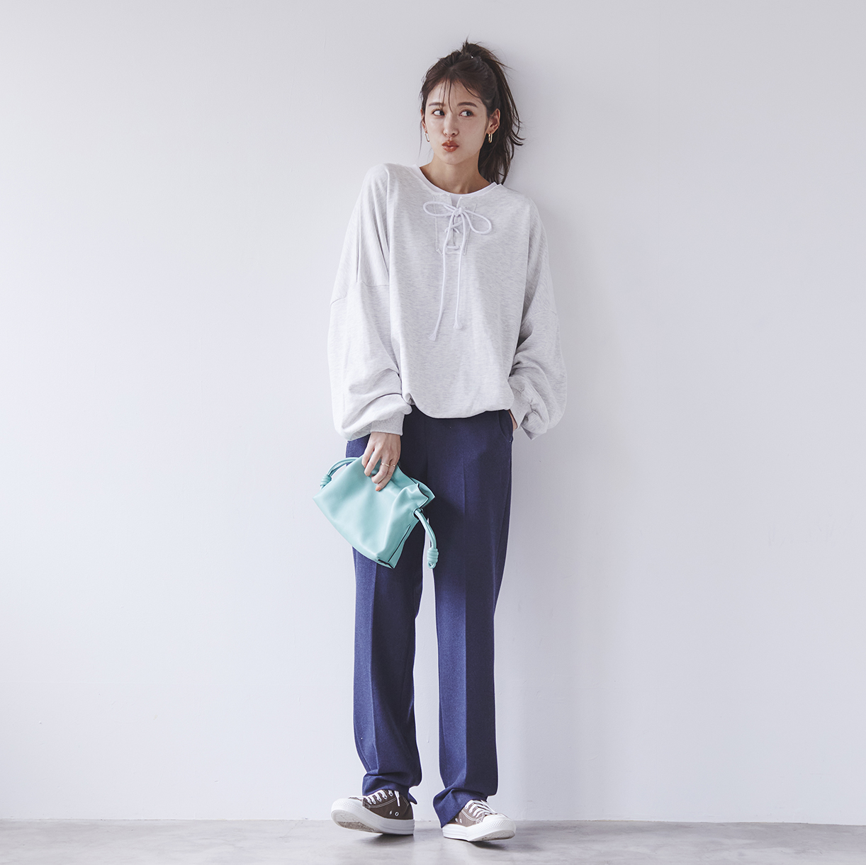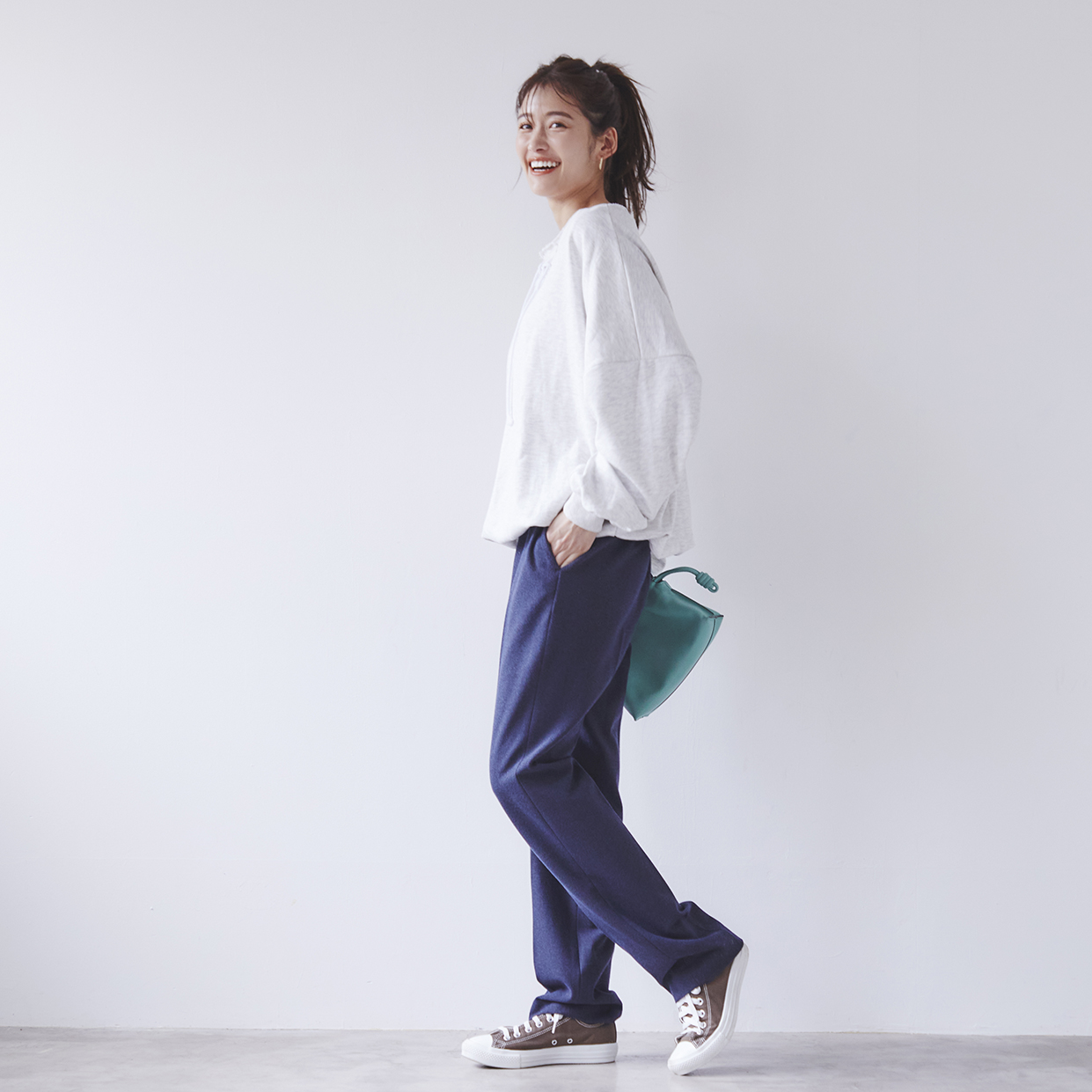 トップスを合わやすく、着こなし自在なストレートパンツです。
