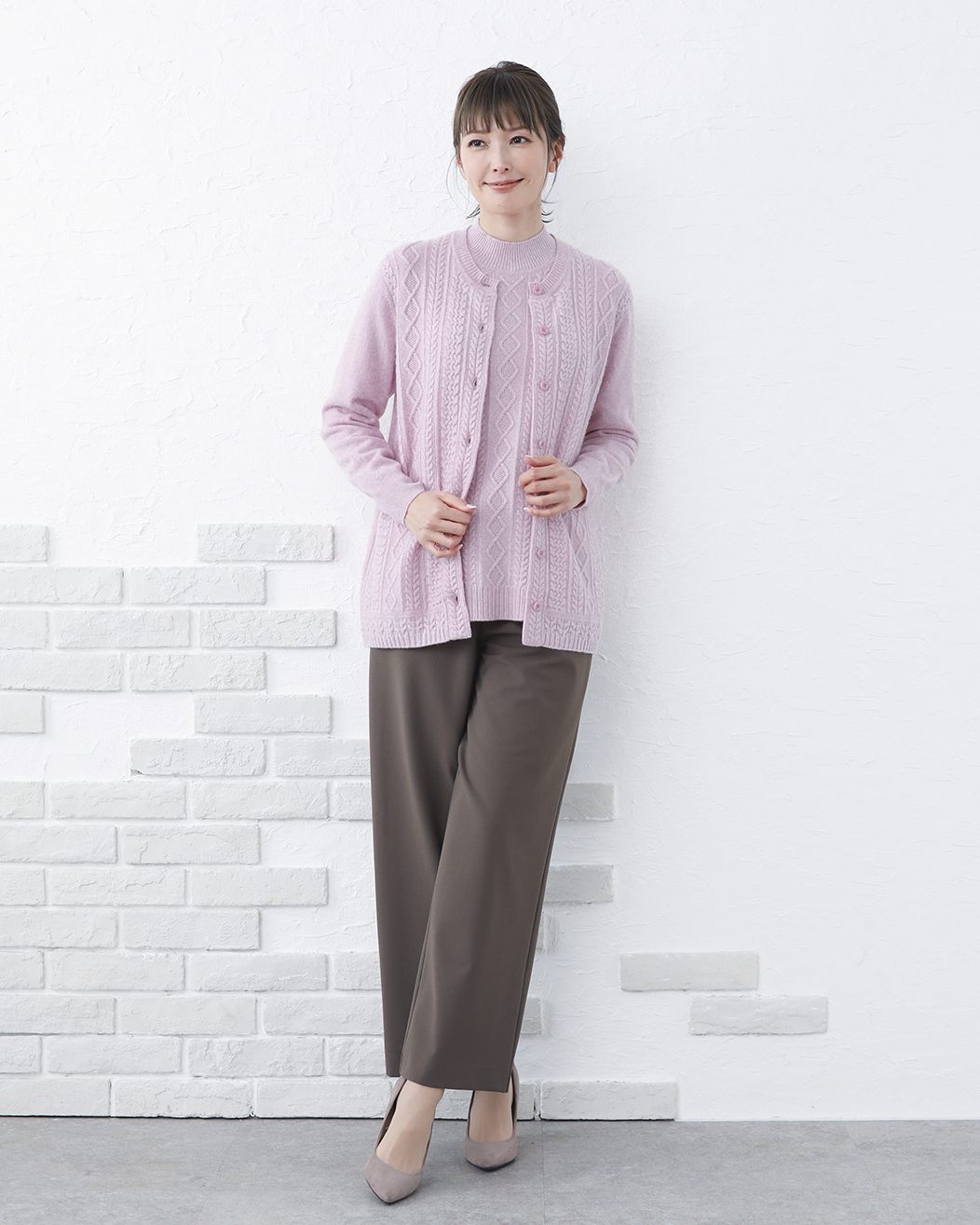 カシミヤニット 42, 900円(税込) 世界有数のカシミヤ産地・内モンゴル地方「オルドス」社の最高級カシミヤ。 トラディショナルなアラン柄を前立てや裾部分にも丁寧に編み込み、上品なルックスのカーディガンに仕上げました。