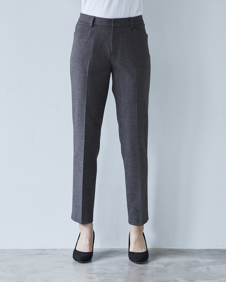 楽なのにきれいなシルエットのツイーディアンクルパンツ。