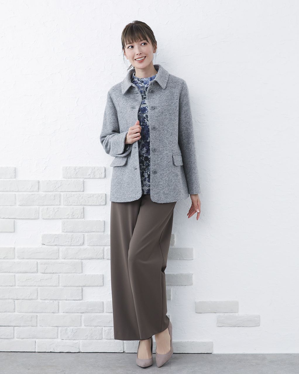 ミックス感のある色合いの起毛素材が暖かで上品なルックスのストレッチジャケット。