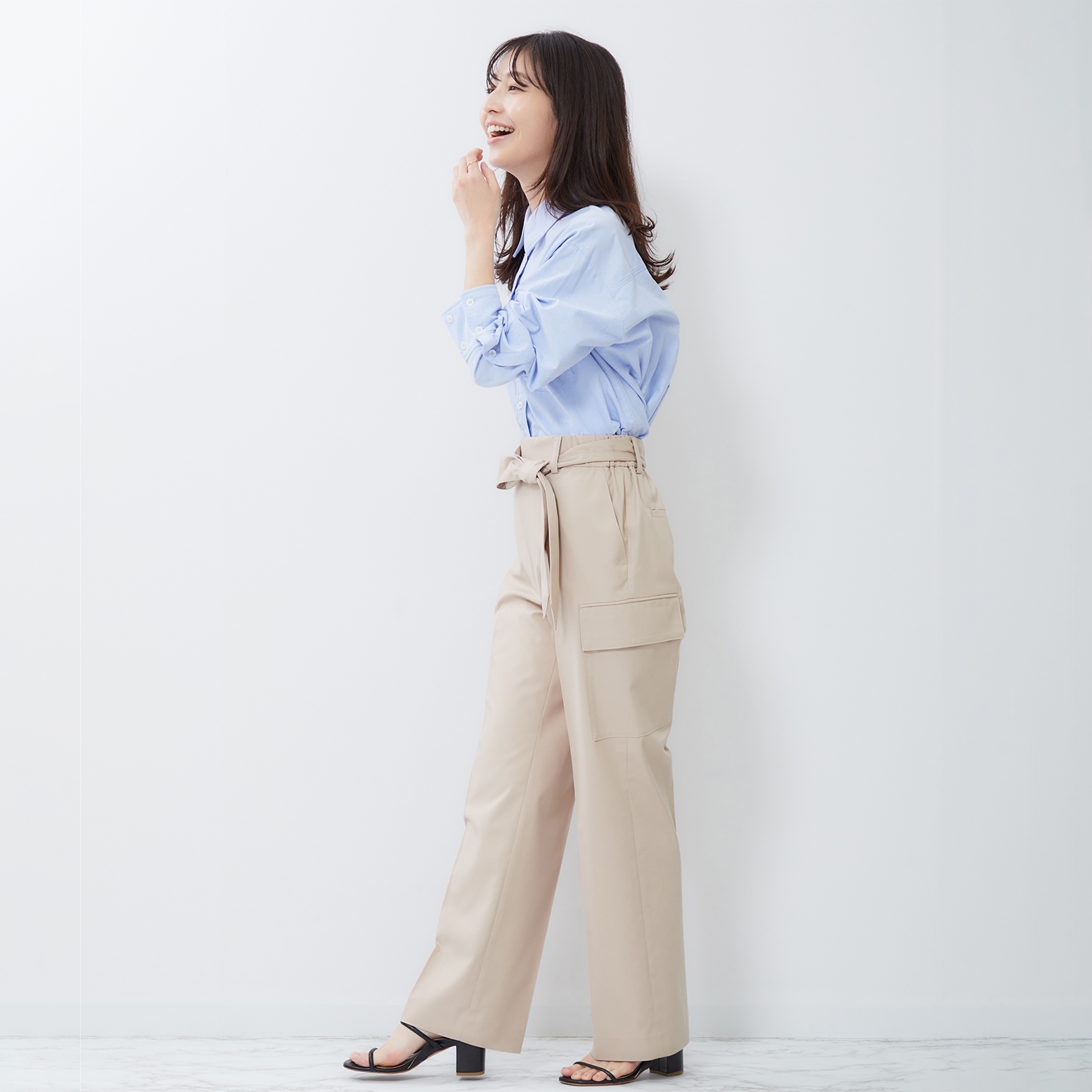 T シャツやシャツなどシンプルなコーディネートはもちろん、フェミニンなブラウスやコンパクトなトップスと合わせると、バランスよく着ていただけます。
