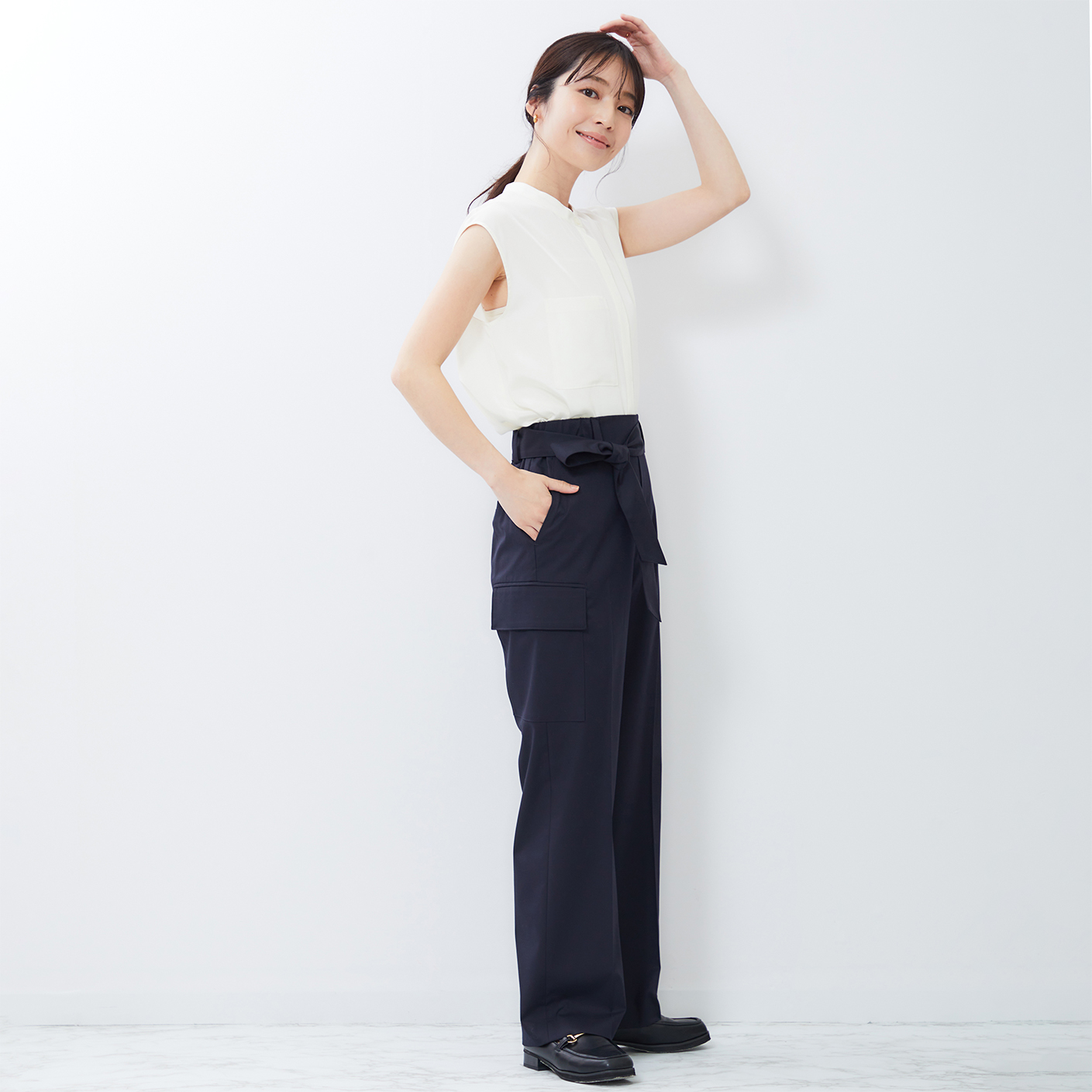 ウエストにベルトが付いているため、トップスのイン・アウトどちらのコーディネートも楽しめます。