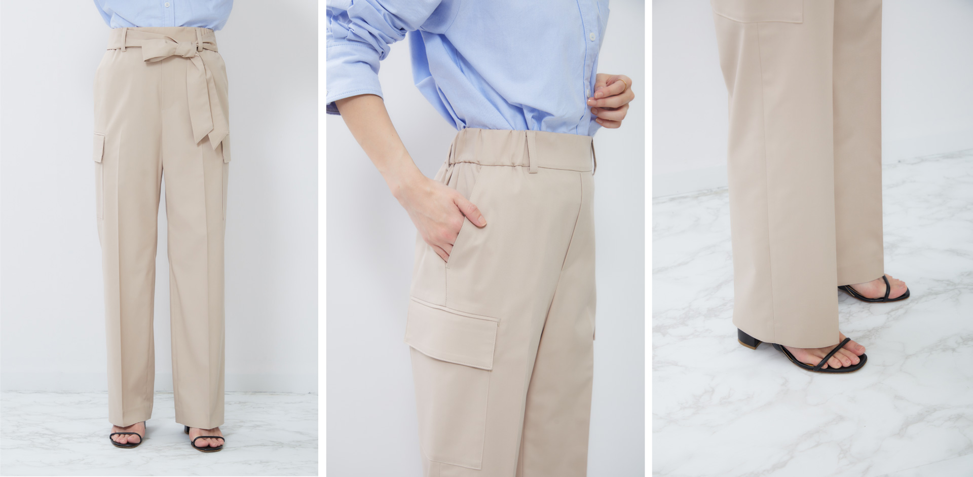 様々なコーディネートに取り入れやすい、大人のためのきれいめカーゴパンツを共同開発しました。