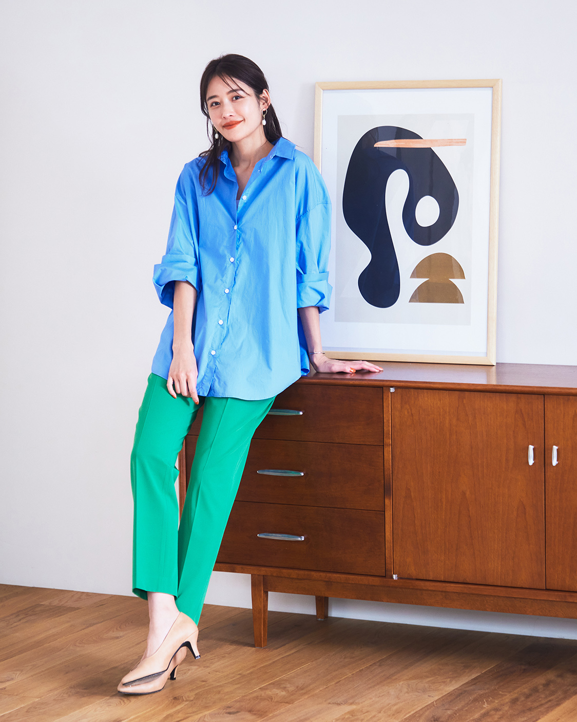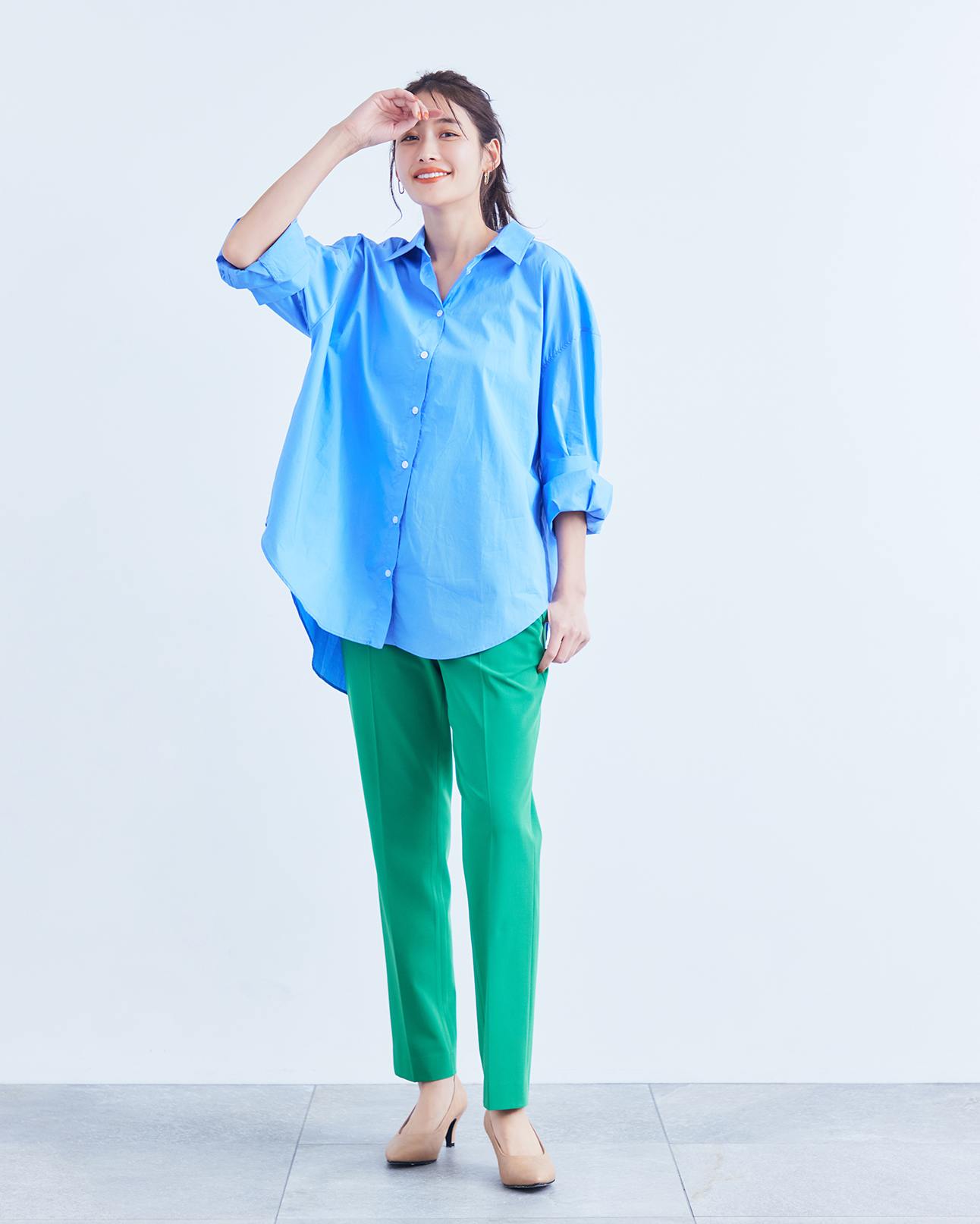 シンプルなキレイめアンクルパンツは、トップスを合わせやすく、カジュアルにもエレガントにも着こなせます。
