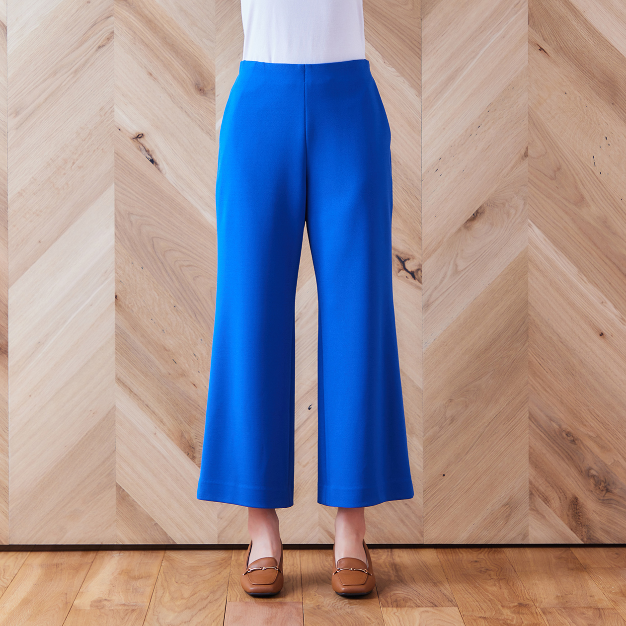 美しい見た目と抜群の着心地にこだわった総ゴムのフレアアンクルパンツです。
