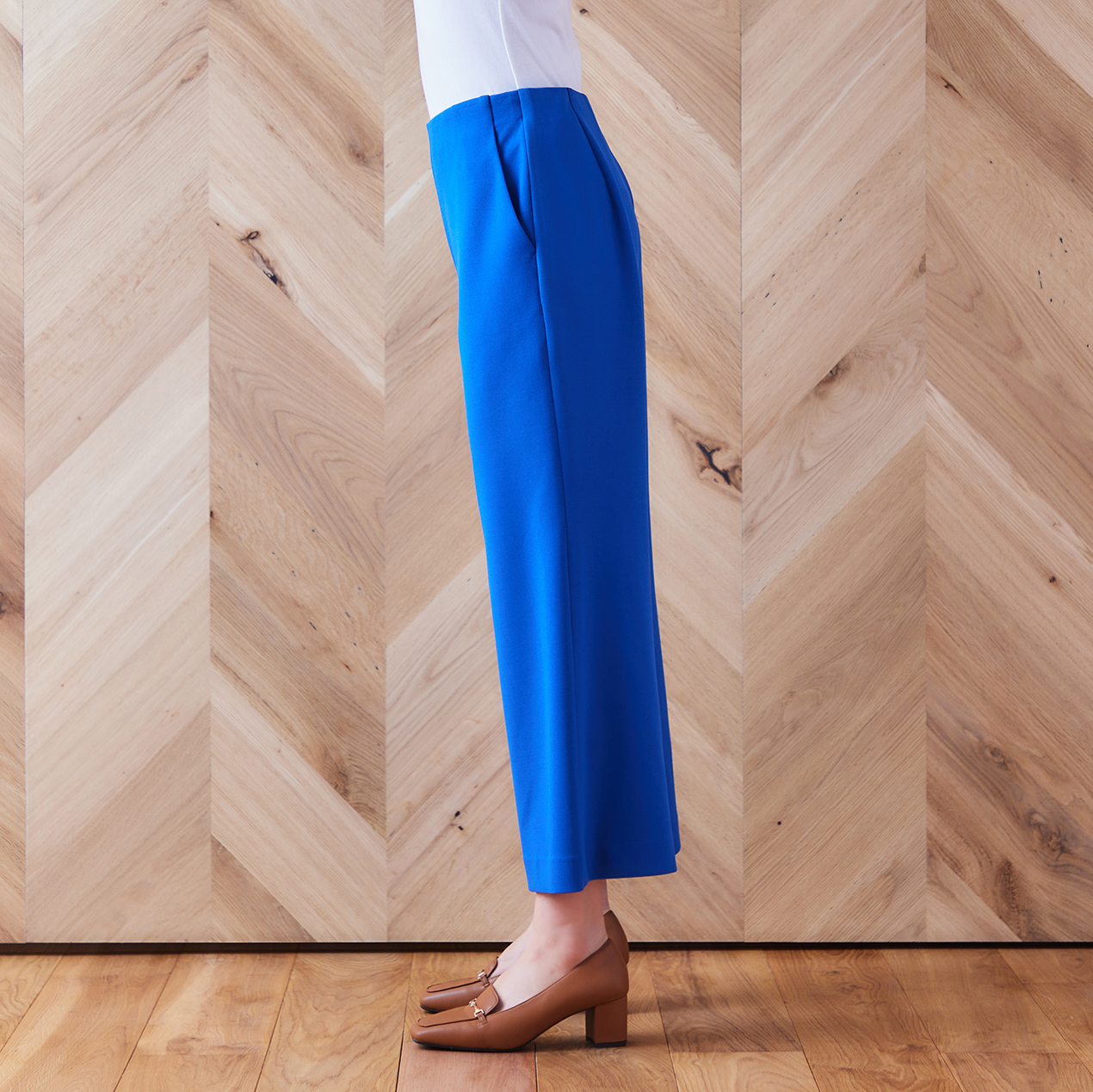 シワになりにくく、伸縮性の良いアンクルパンツは、おうち時間も、おしゃれも楽しめて着まわし自由自在