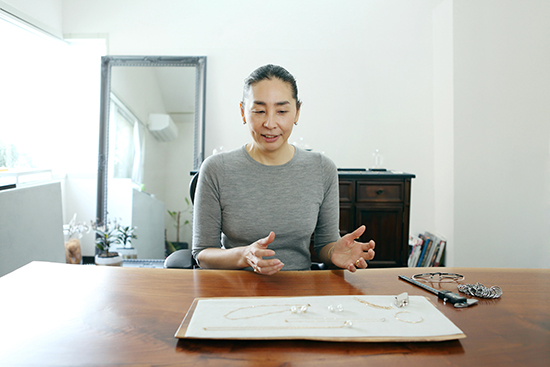ブランドを始めた当初はパールを扱っていなかったという酒井さん。「昔からパールは好きでしたが、自分の浅い知識ではその深い魅力を伝えられないと思っていました」といいます。そんな酒井さんがパールに惹かれていったのには、同じジュエリー業界で活躍するある人との出会いがあったそう。「その方は、細やかな観察眼でパールの種類や粒ごとの特徴や魅力を見出してくれる専門家で、パールの知識だけでなく、生産者さんの思いやパールを取り巻く愛情あふれる世界を教えてもらいました」。パールは生き物からとれる宝石なので、それぞれ個性があって当然。一つひとつに物語と愛おしさがあることを知り、自然とたくさんの人に伝えたいという気持ちが高まったといいます。