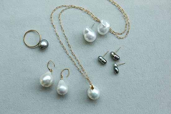 バロックとは、ポルトガル語で「いびつ」という意味があり、歪みやえくぼのあるパールをバロックパールといいます。自然のなかで偶然できたものなので、同じ形は2つとなく、持ち主だけの特別なパールといえるでしょう。「何かの形に見える」「飼っている猫に似ている」など、親和性が生まれるのもバロックパールの魅力だそうです。