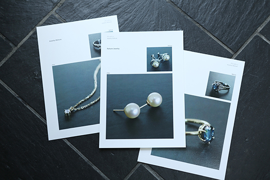 2.リフォーム事例集の一部。パールに限らず、古いジュエリーを自分好みのデザインにリフォームしてもらうことも。新たな魅力を手に入れることができます。