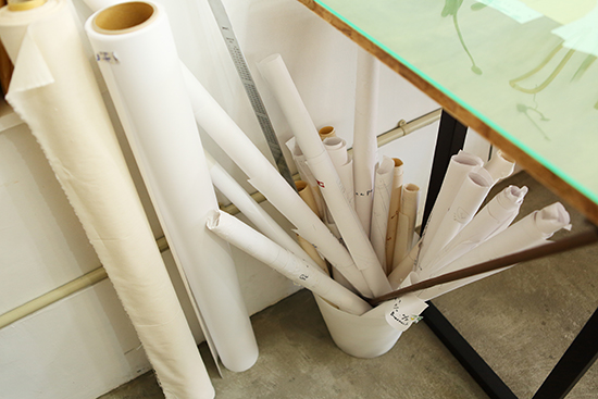 アパレルの会社を退職したあと、「藍染の裏毛(ウラケ)を作りたい」という思いから、ファクトリーブランドの立ち上げに参加したり、バンドの衣装の制作をしたり、活動の場を広げていったといいます。その後、リフォーム店で働くように。「そこは出来高性だったので、しばらくフリーランスとして活動していました。その頃出合ったのがこの場所なんです」。