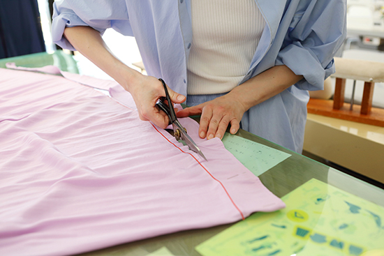 服飾専門学校でパターンを学んだという関さん。しかし、すぐにはアパレルの会社に就職しなかったといいます。「アパレル業界に憧れはありましたが、まだ迷いがあって、学校を卒業してすぐは飲食店でバイトをしていました。今思うと、そのときの接客の経験が今の仕事に役立っているのかもしれないです」と振り返ります。