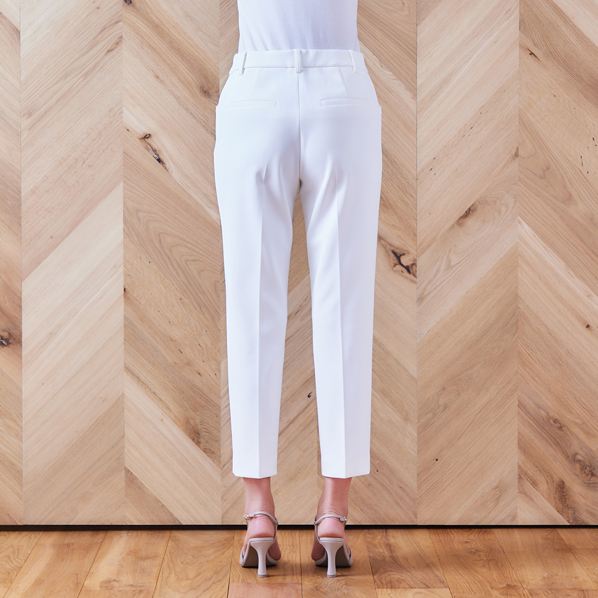 センタープレス有りのキレイめでスッキリ見えるストレートアンクルパンツは、