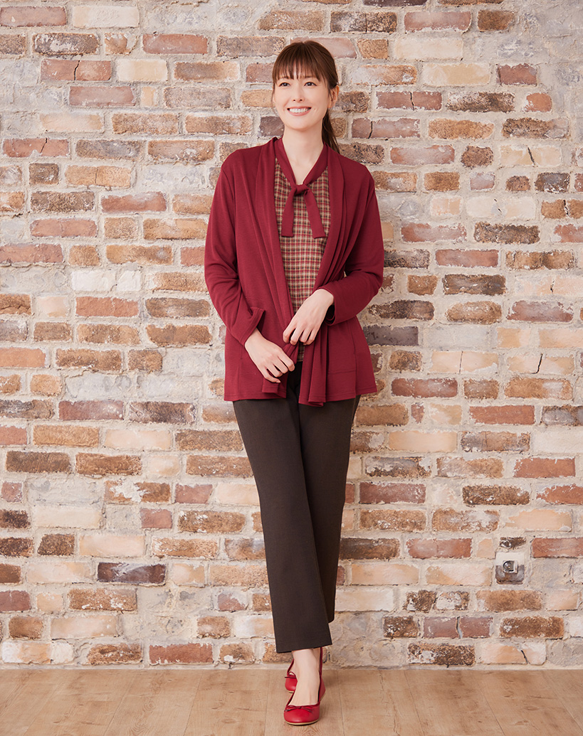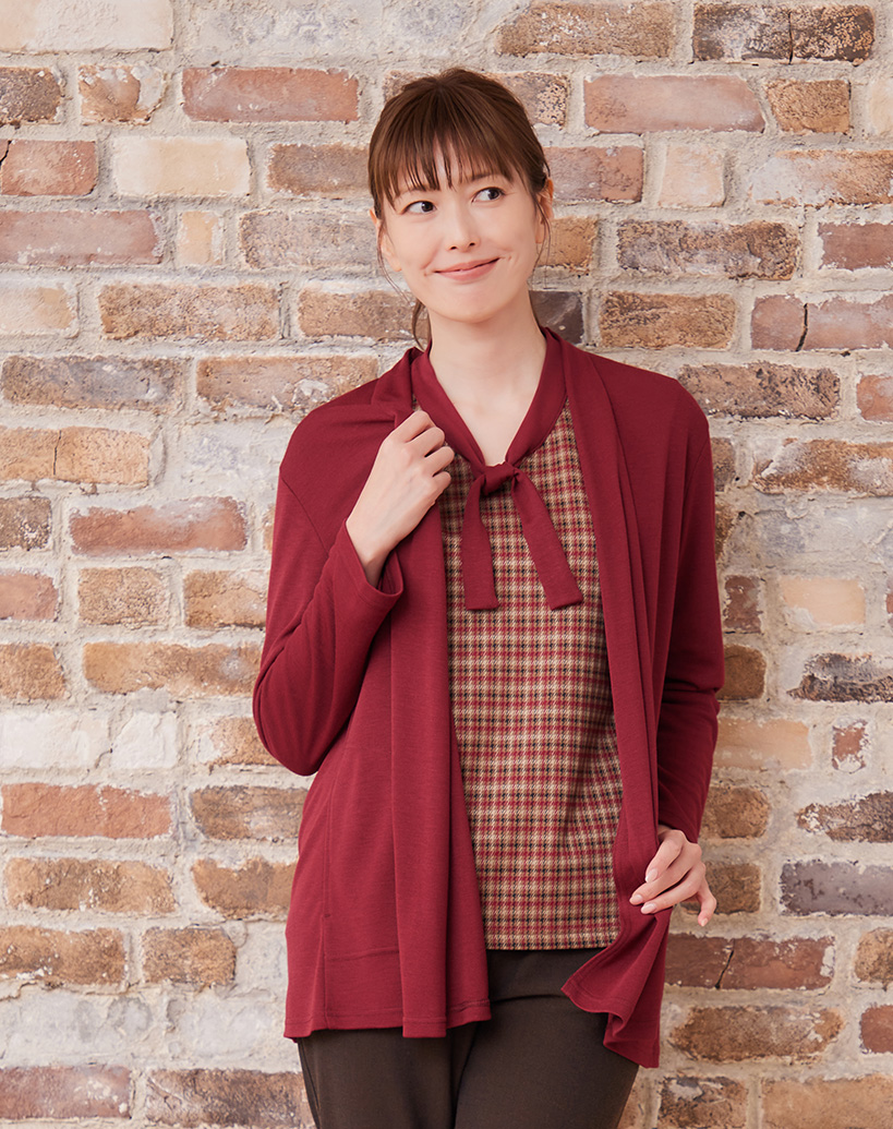 さらっとした肌触りと快適なストレッチ性が魅力の、フライストッパーカーディガン。 両サイドのポケットがアクセントになり、長めの着丈はスタイルアップ効果も。