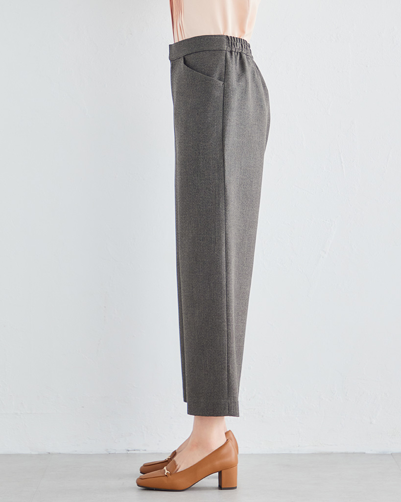 脚が美しくスッキリ見えるようにこだわったセミワイドアンクルパンツです。