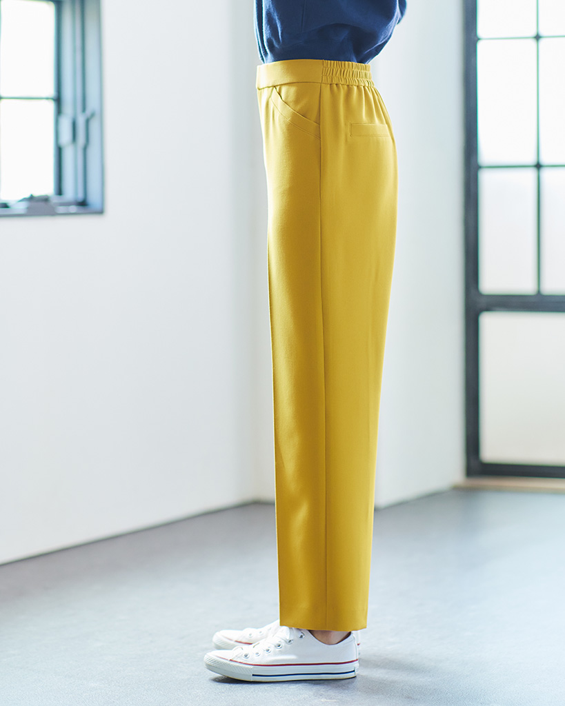 シンプルなデザインでトップスが合わせやすく、着こなし自由自在なアンクルパンツです。