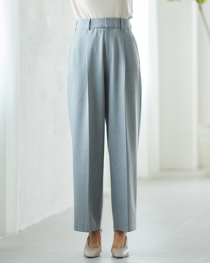 NEWシルエット・ハイウエストで程よいゆとりのタックセミワイドアンクルパンツです。