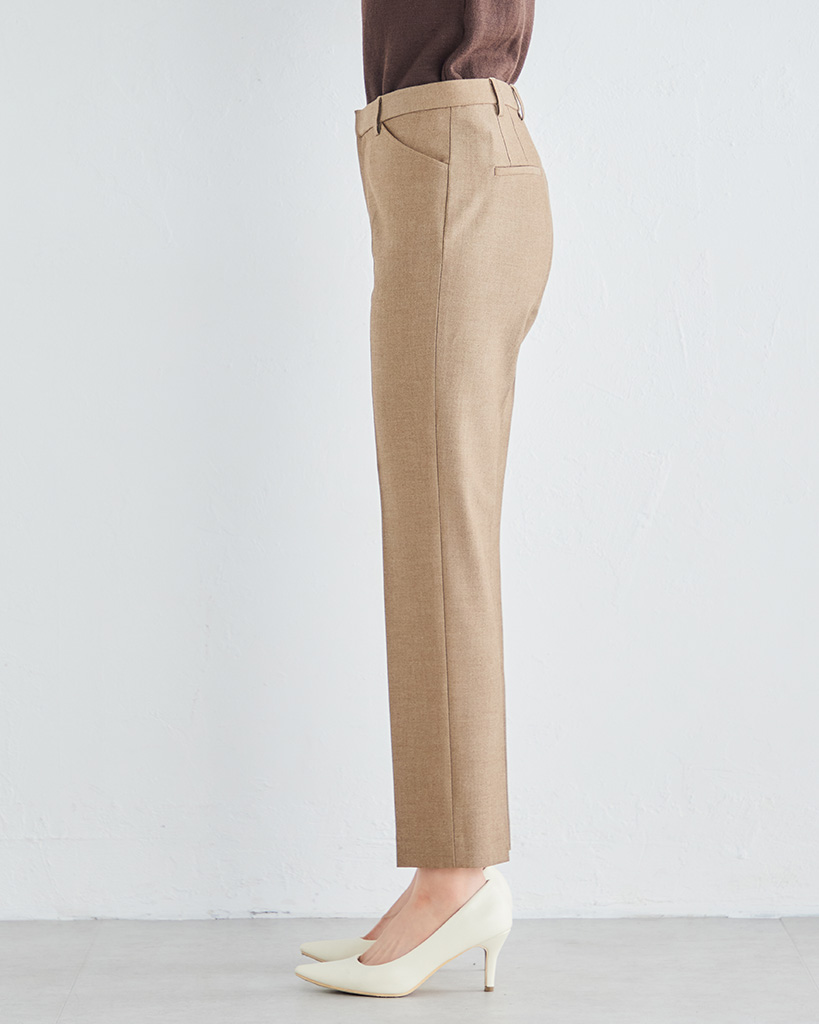 ストレッチ性に優れ美しいシルエットを一日中キープしてくれる、楽なのにキレイが叶うシンプルで飽きのこないパンツは、